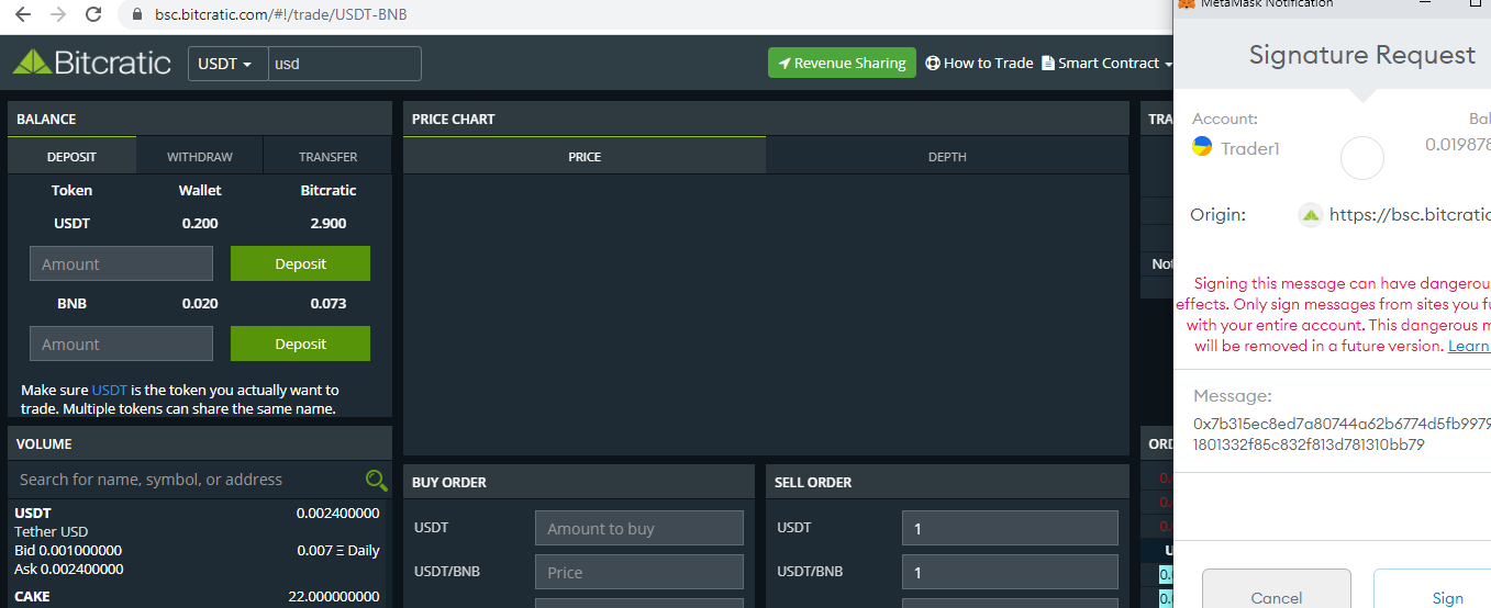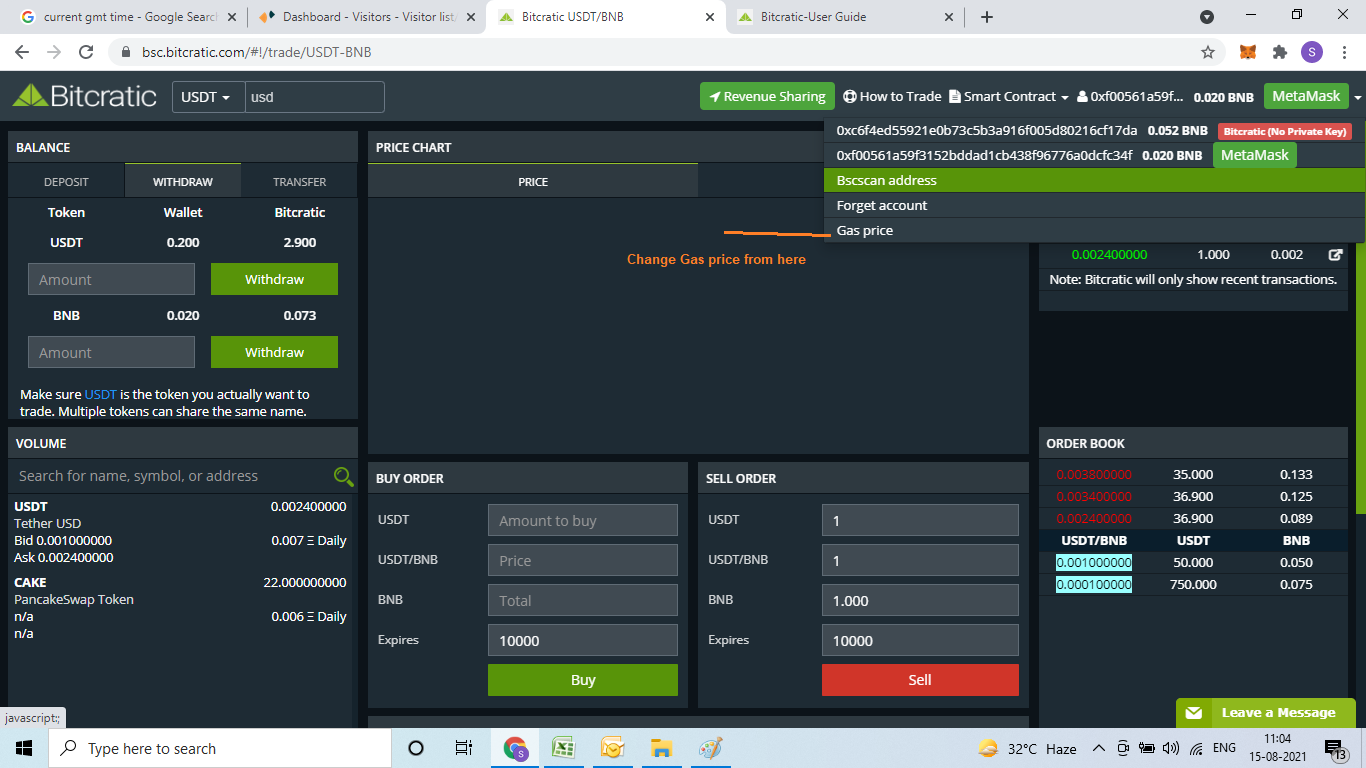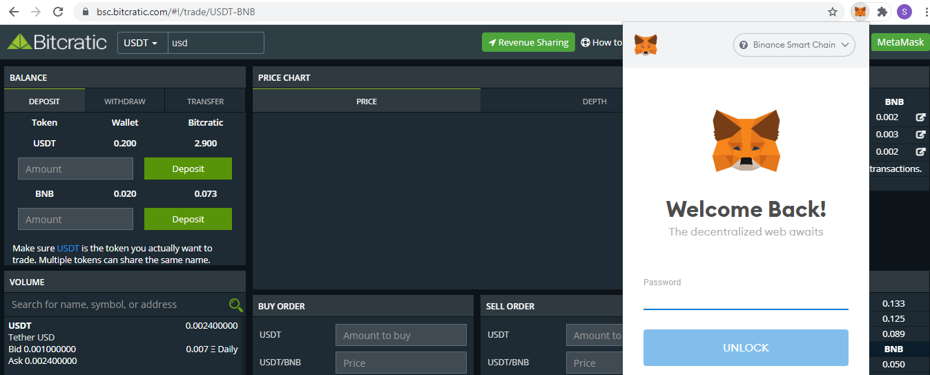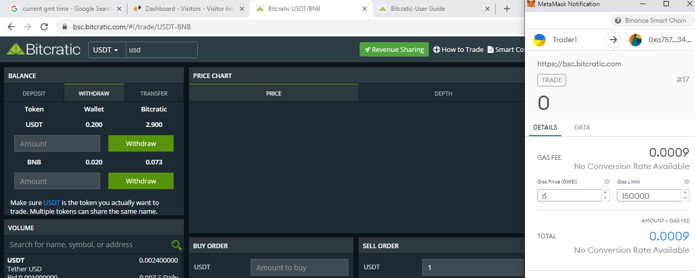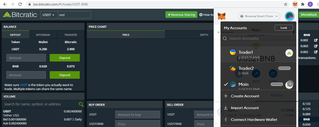 Since now your BEP20 Address is connected with Bitcratic, you can deposit Token/BNB to Bitcratic Smart contract for Trading.